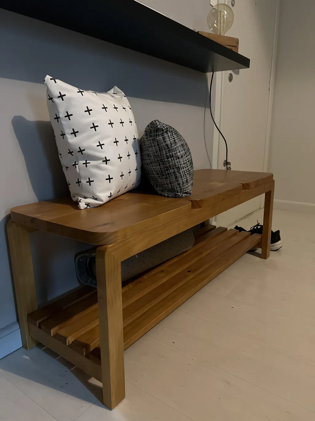 Que bom saber que você achou o banco bonito e prático! Agradecemos pelo seu comentário sobre os cuidados com objetos pontudos, é um ponto importante para preservar a madeira. Ficamos felizes com sua avaliação!
