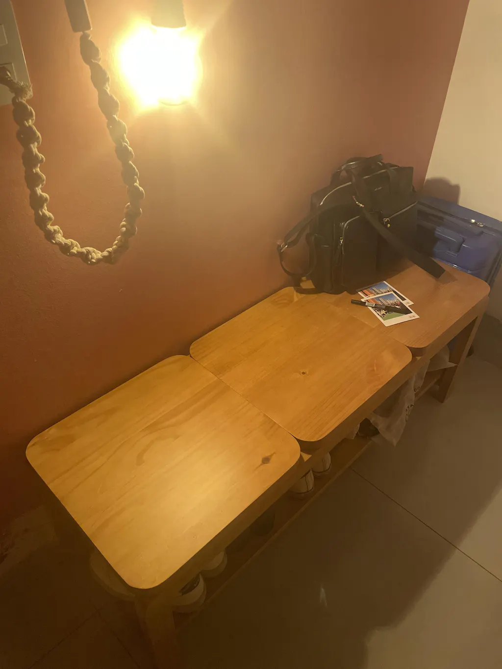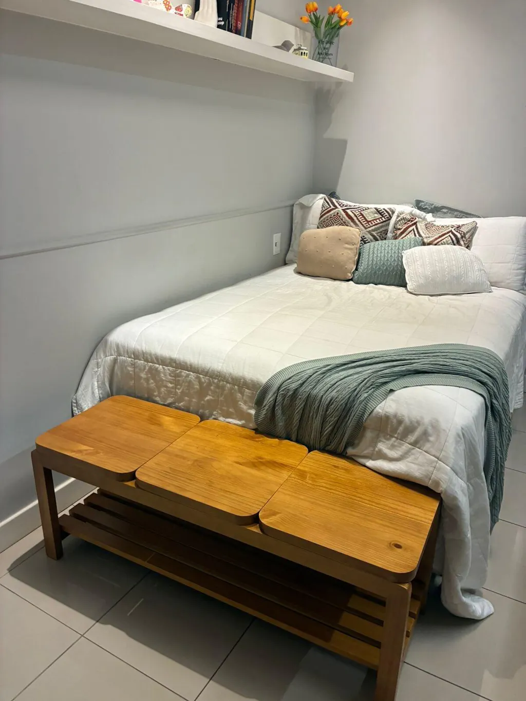 O banco é muito prático e bonito, mas tem que tomar cuidado pra não esbarrar coisas pontudas.