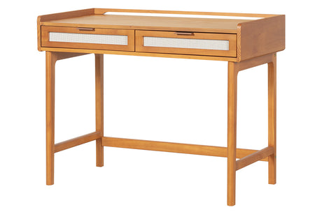 Produzida totalmente em Pinus, com acabamento no tom nozes, a Nora combina resistência e leveza, enquanto os cantos arredondados trazem sofisticação e segurança. Suas duas gavetas com tela e puxadores de metal com acabamento cobre garantem organização e praticidade para materiais de estudo ou trabalho.