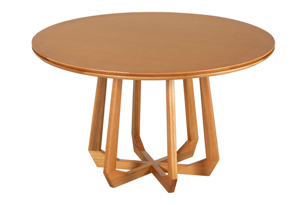 Com seu formato redondo, essa mesa de jantar 4 lugares favorece a interação entre todos à mesa, criando um ambiente mais próximo e receptivo. A base com desenho geométrico traz originalidade ao espaço, acrescentando um toque de design moderno sem sobrecarregar a decoração.