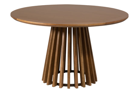 Mesa de Jantar Redonda Didion é a peça que faltava em sua sala de jantar, uma verdadeira joia decorativa para seu lar. Para assegurar um acabamento excepcional, o laminado de MDF das mesas ripadas da Linha Didion adiciona um toque refinado e garante sua durabilidade. Já a moldura do tampo é composta de peças de madeira maciça cuidadosamente encaixadas e coladas, proporcionando um visual impecável. Esta mesa redonda 4 lugares não se destaca apenas por sua estética encantadora mas também impressiona pela durabilidade, uma vez que a estrutura de eucalipto reflorestado é reconhecida por sua resistência e sustentabilidade. A cor avelã desta mesa de madeira maciça adiciona um toque de calor e acolhimento à sua sala de jantar, criando um ambiente convidativo para reuniões memoráveis com familiares e amigos. Com capacidade de suportar até 50 kg de peso bem distribuídos, a Mesa de Jantar Didion é robusta e estável, proporcionando a tranquilidade necessária para desfrutar de suas refeições sem preocupações. Seu desenho especial e o diâmetro de 1,30 fazem desta mesa ripada a escolha perfeita para decorar salas de jantar pequenas ou cozinhas compactas. Adicionando elegância sem ocupar muito espaço, a Mesa de Jantar Didion combina facilmente com outros móveis, tornando-se uma peça versátil para sua decoração. Não deixe de explorar as outras opções de mesas da Linha Didion aqui e descubra como transformar seu espaço com estilo e funcionalidade.NESTE AMBIENTE: Buffet Lótus | Cadeira Santorini Tecido Cru | Cadeira Santorini Tecido Cinza