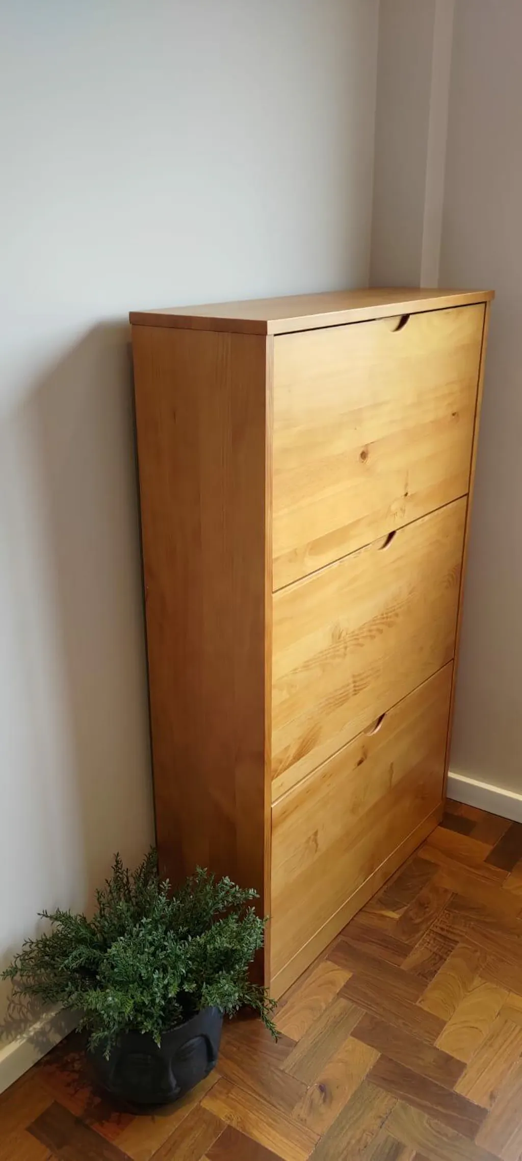 ✔ Design discreto e moderno, perfeito para qualquer ambiente✔ 3 gavetas com divisórias, organizando até 18 pares de sapatos✔ Sapateira vertical, ideal para otimizar espaços pequenos✔ Madeira de Pinus sustentável, garantindo resistência e durabilidade✔ Versátil, podendo ser usada no quarto, closet ou hall de entrada