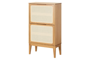 Produzida totalmente em madeira maciça de Pinus, a Sapateira Serena destaca-se pelo detalhe em palha natural de algodão nas portas basculantes, que oferece ventilação e um charme natural. Compacta e funcional, acomoda até 10 pares de calçados, perfeita para ambientes que exigem organização com estilo.